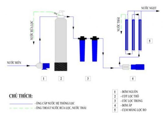 Sơ đồ công nghệ RO lọc nước biển, nước lợ, nước nhiễm mặn