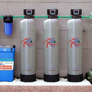 Hệ lọc tổng nước sinh hoạt bao gồm 3 cột lọc composite 1054 và 1 cột lọc xanh 20′ có tác dụng: